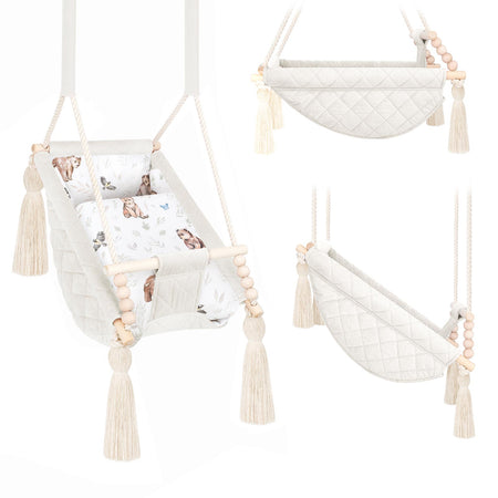 Each baby hammock features robust construction with sturdy wooden frames and reinforced cotton ropes, complete with adjustable heights up to 180 cm. Built-in safety belts ensure your little one stays secure during gentle swaying motions, while premium quilted fabrics create a cozy haven for rest and play.